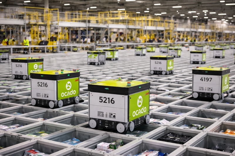 Ocado has spent more than a decade developing advanced automated fulfilment technology designed to support online grocery operations. At the heart of its platform are large scale customer fulfilment centres where fleets of small robots move across a grid system above stacks of grocery storage bins. The robots retrieve products stored within the grid and deliver them to picking stations where orders are assembled before dispatch to customers. The system combines robotics, automated storage and retrieval technology, machine learning and complex warehouse control software to coordinate thousands of simultaneous movements inside a distribution facility.
