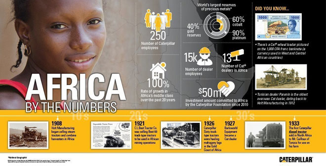 "For 90 years, Caterpillar machines have helped build critical infrastructure projects throughout Africa. Today, we bring not only construction machinery to the continent, but also traditional and renewable power generation solutions, diesel-electric locomotives, marine engines and mining equipment," said Oberhelman. "With today's announcement, we are proudly confirming our plan to make a long-term investment to help build, develop and power communities, and serve as an education and training partner to broaden and strengthen local workforce talent and expertise."