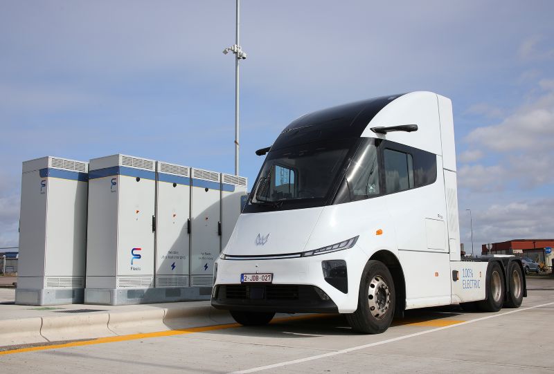 A new generation long range electric heavy goods vehicle has made its UK debut after completing its first charge at the Fleete ultra rapid truck charging hub at the Port of Tilbury.